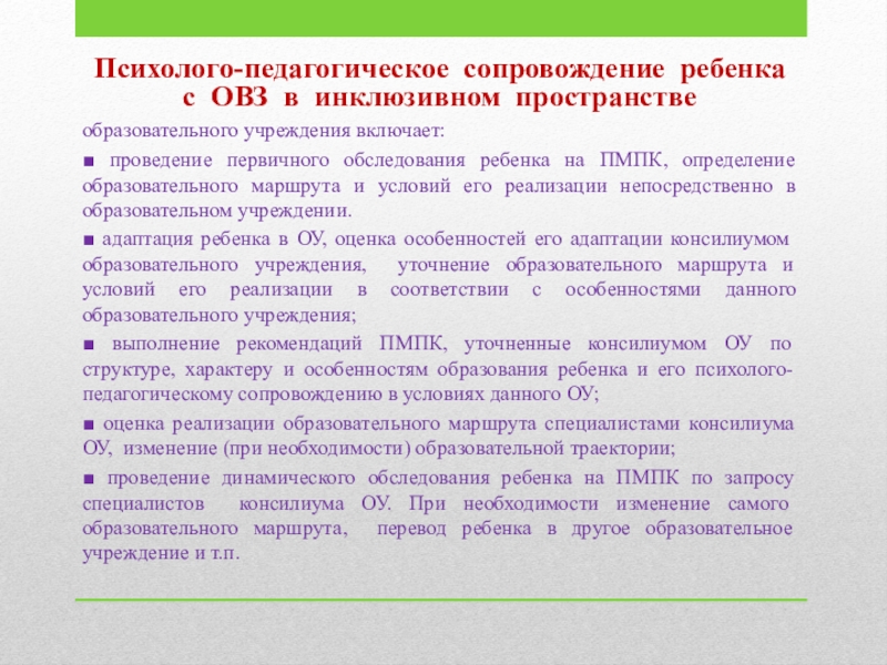 Слайд 7Психолого-педагогическое сопровождение ребенка с ОВЗ в инклюзивном пространстве