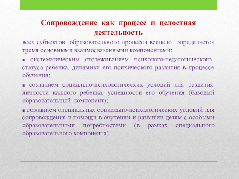 Слайд 6Сопровождение как процесс и целостная деятельность
