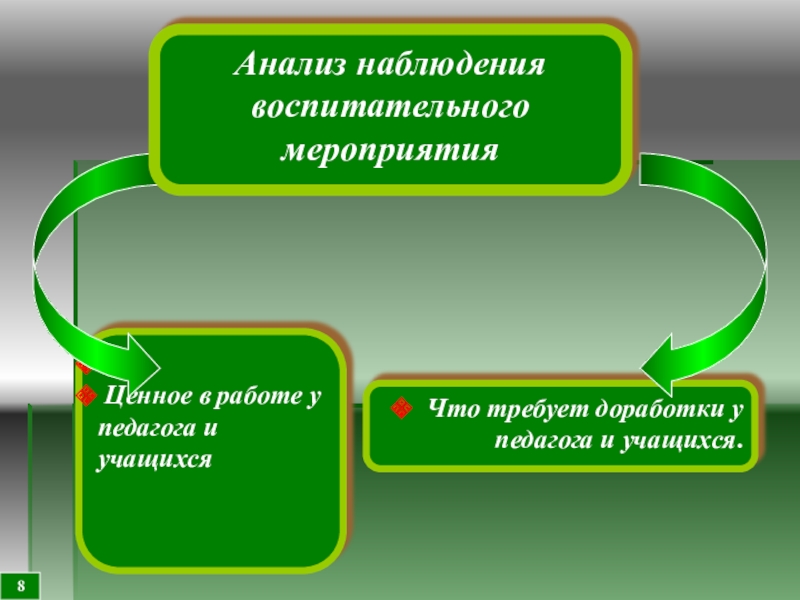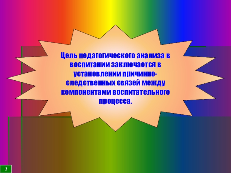 Слайд 28Цель педагогического анализа в воспитании заключается в установлении причинно-следственных связей между