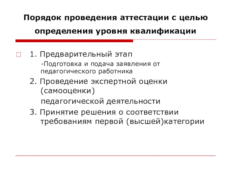 Слайд 10Порядок проведения аттестации с целью определения уровня квалификации