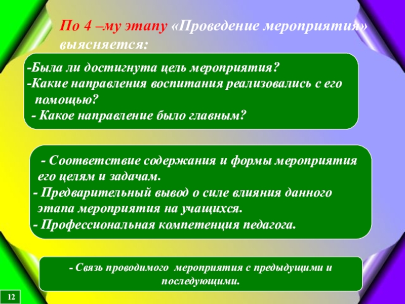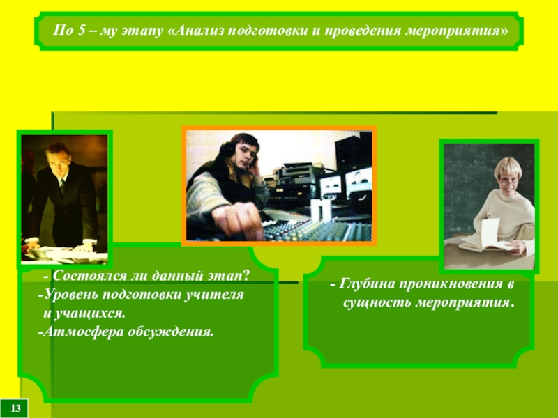Слайд 38 По 5 – му этапу «Анализ подготовки и проведения мероприятия»