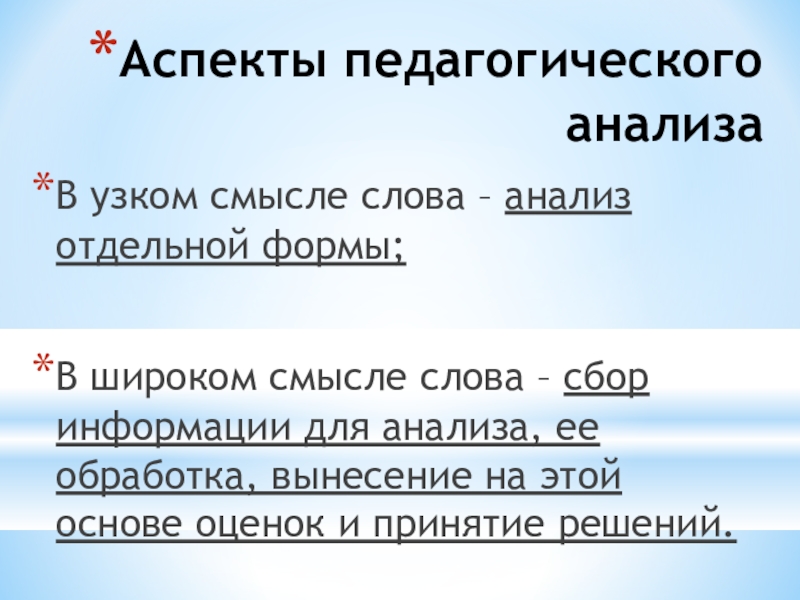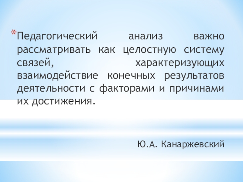 Педагогический анализ важно рассматривать как целостную систему связей, характеризующих взаимодействие конечных