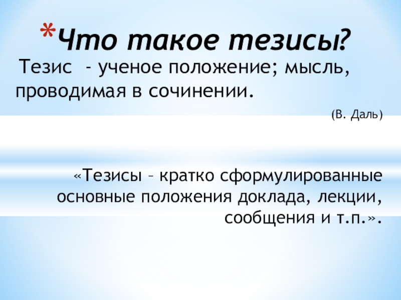 Слайд 18 Тезис - ученое положение; мысль, проводимая в сочинении.