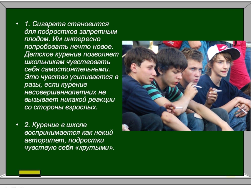 1. Сигарета становится для подростков запретным плодом. Им интересно попробовать нечто