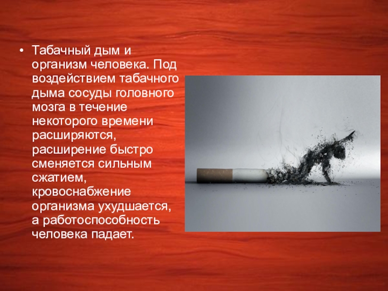 Табачный дым и организм человека. Под воздействием табачного дыма сосуды головного мозга в течение некоторого времени расширяются,
