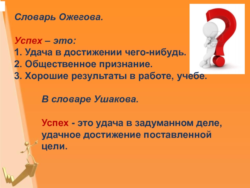 Успех - это удача в задуманном деле, удачное достижение поставленной цели.