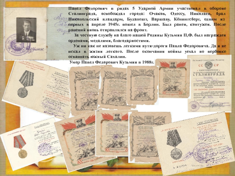 Павел Федорович в рядах 5 Ударной Армии участвовал в обороне Сталинграда,