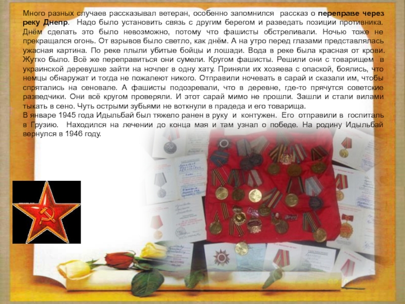 Слайд 30Много разных случаев рассказывал ветеран, особенно запомнился рассказ о переправе через