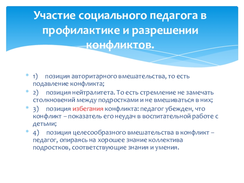 Участие социального педагога в профилактике и разрешении конфликтов.