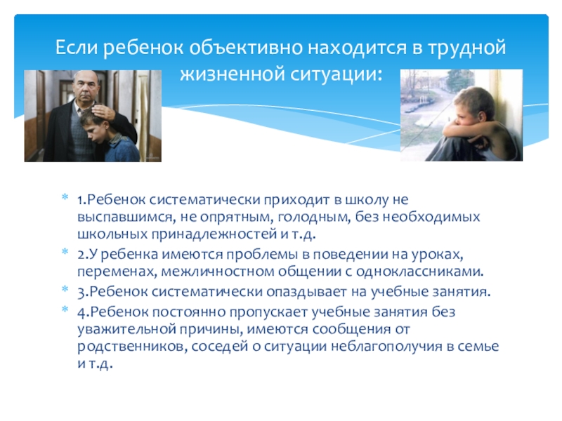 Если ребенок объективно находится в трудной жизненной ситуации: