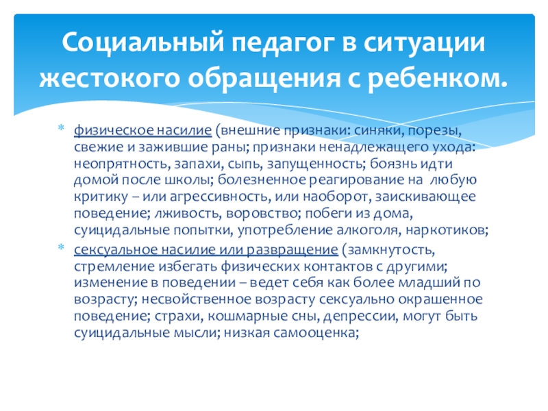 Социальный педагог в ситуации жестокого обращения с ребенком.