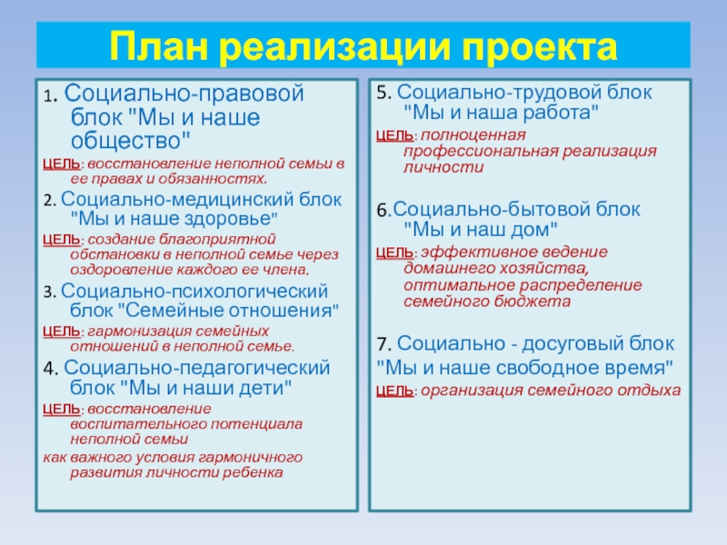 Цель : Организовать межведомственную деятельность, направленную на оказание комплексной социально-педагогической помощи неполным семьям.