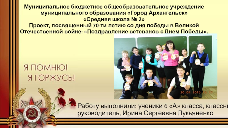 Работу выполнили: ученики 6 «А» класса, классный руководитель, Ирина Сергеевна Лукьяненко