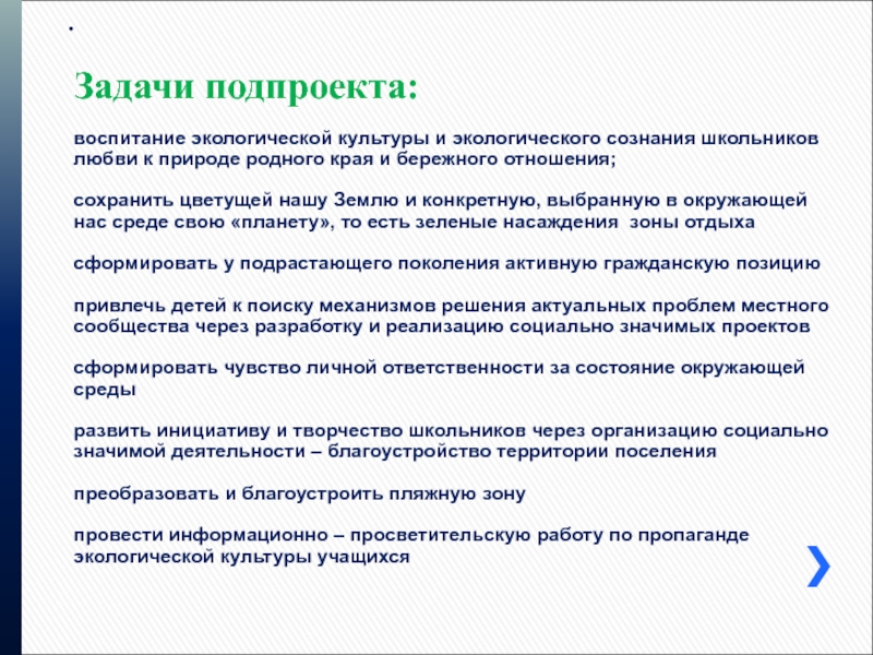 Задачи подпроекта:
