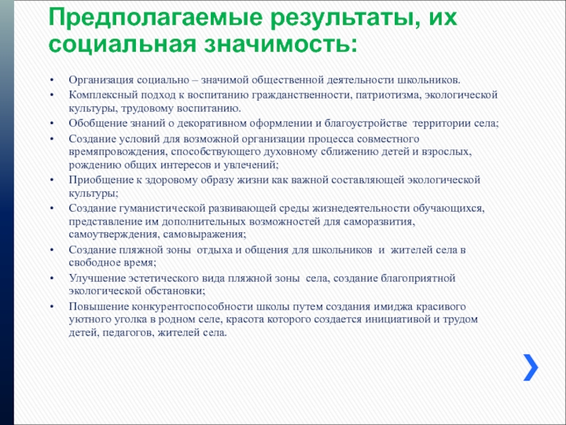 Слайд 15Предполагаемые результаты, их социальная значимость: