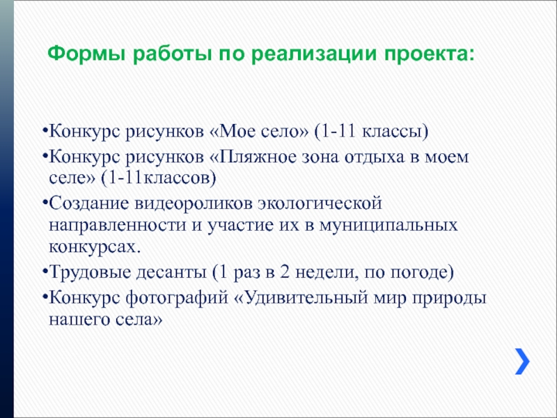 Слайд 14Формы работы по реализации проекта: