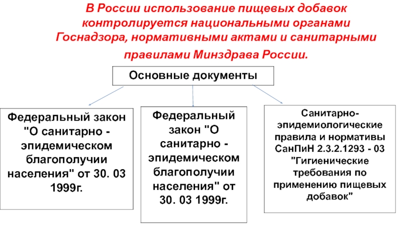 Слайд 16В России использование пищевых добавок контролируется национальными органами Госнадзора, нормативными актами
