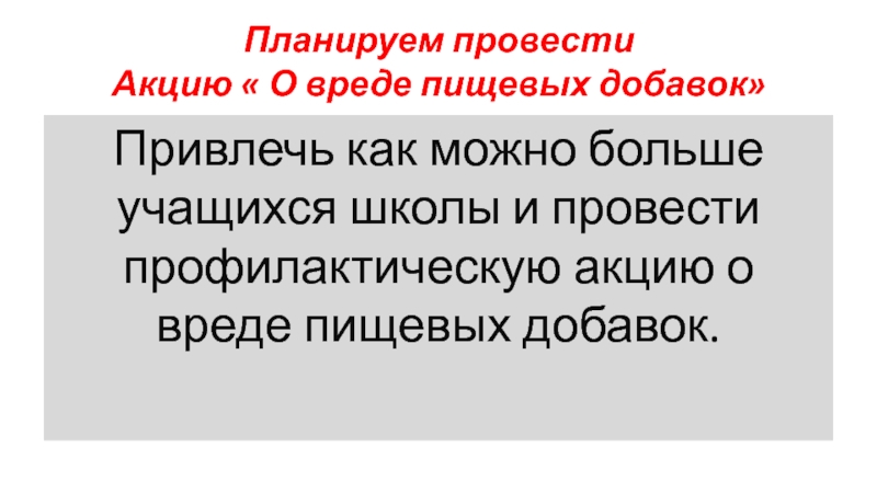 учащихся школы и провести профилактическую акцию о вреде пищевых добавок.