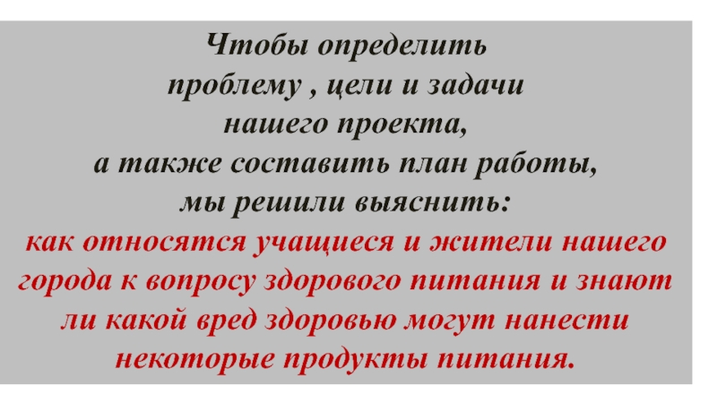 как относятся учащиеся и жители нашего города к вопросу здорового питания и знают ли какой вред здоровью могут нанести некоторые продукты питания.