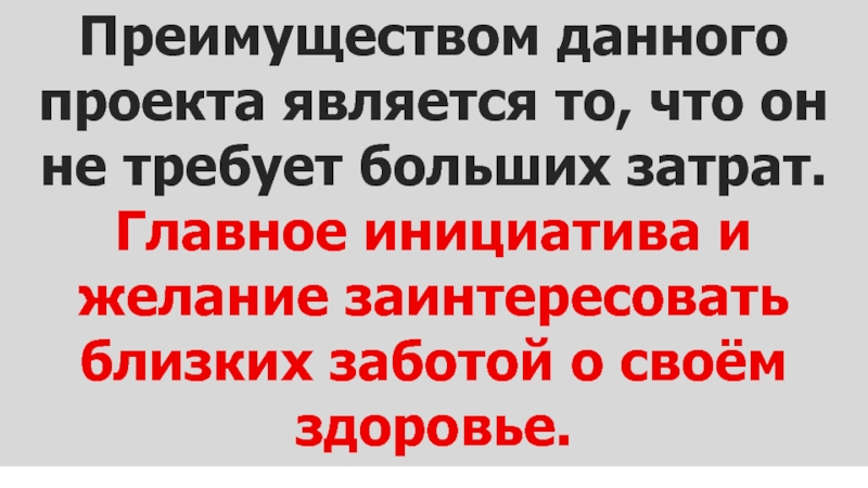 Слайд 30Преимуществом данного проекта является то, что он не требует больших затрат.