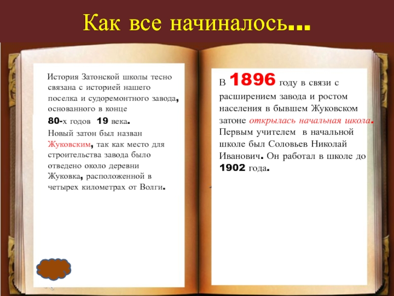 В 1896 году в связи с расширением завода и ростом населения в бывшем Жуковском затоне открылась начальная школа.