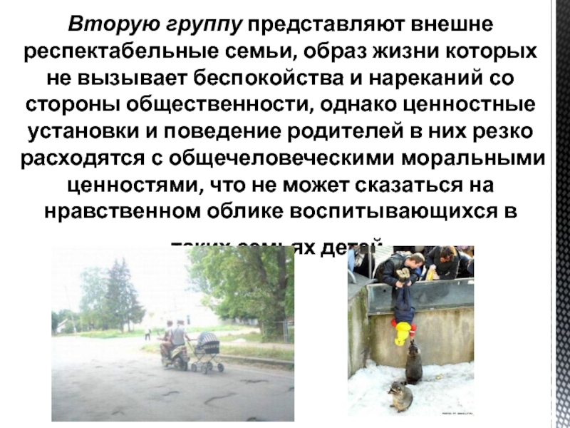Слайд 5Вторую группу представляют внешне респектабельные семьи, образ жизни которых не вызывает беспокойства