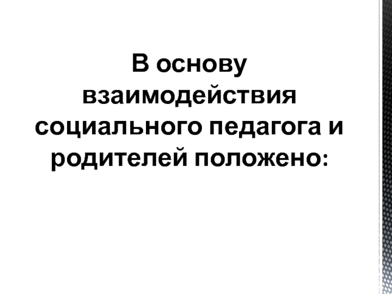Слайд 6В основу взаимодействия социального педагога и родителей положено: