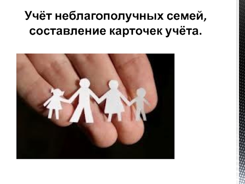 Слайд 12Учёт неблагополучных семей, составление карточек учёта.