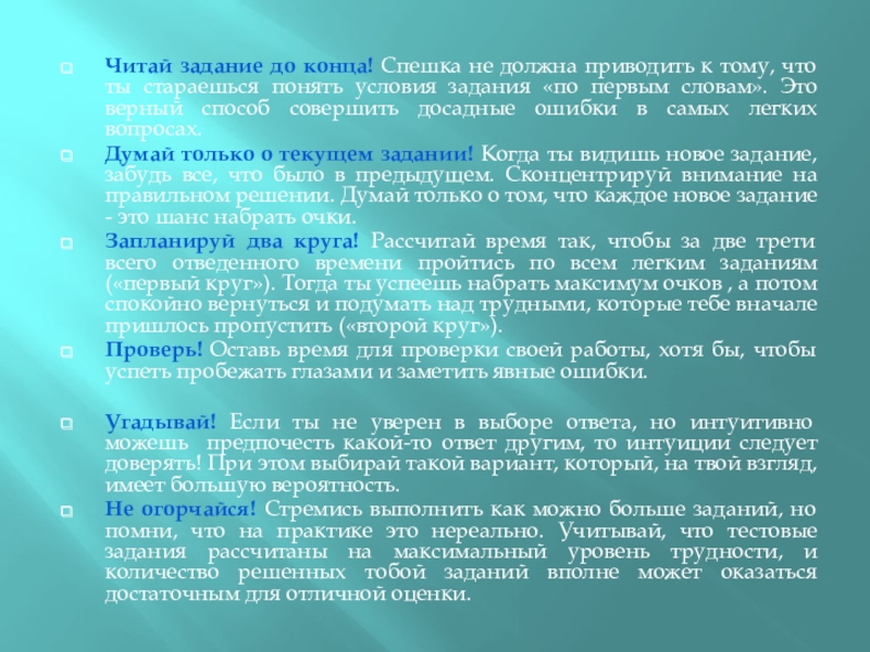 Однако, готовясь к экзаменам, никогда не думай о том,
