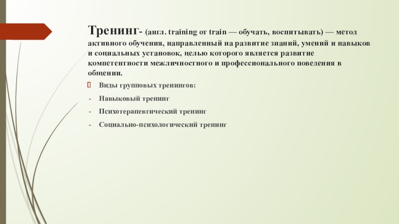 Виды групповых тренингов: