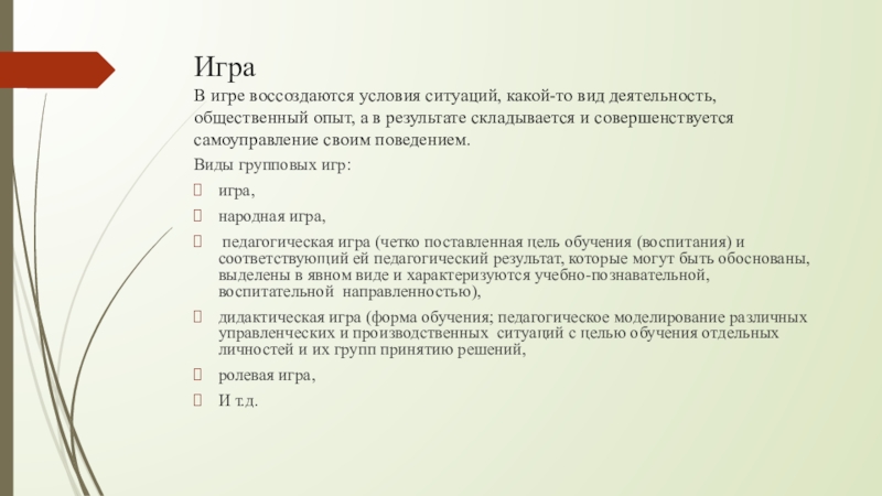 педагогическая игра (четко поставленная цель обучения (воспитания) и соответствующий ей педагогический результат, которые могут быть обоснованы, выделены в явном виде и характеризуются учебно-познавательной, воспитательной направленностью),