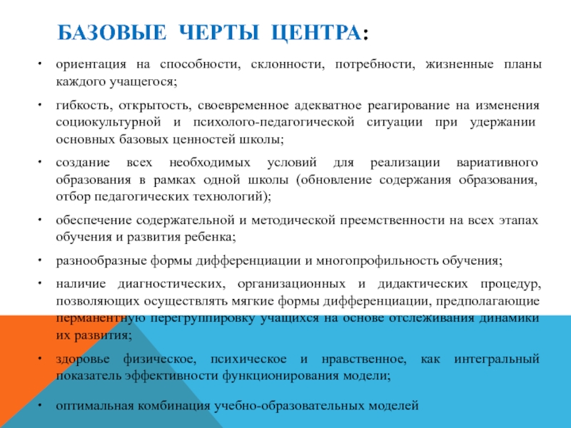 БАЗОВЫЕ ЧЕРТЫ ЦЕНТРА: