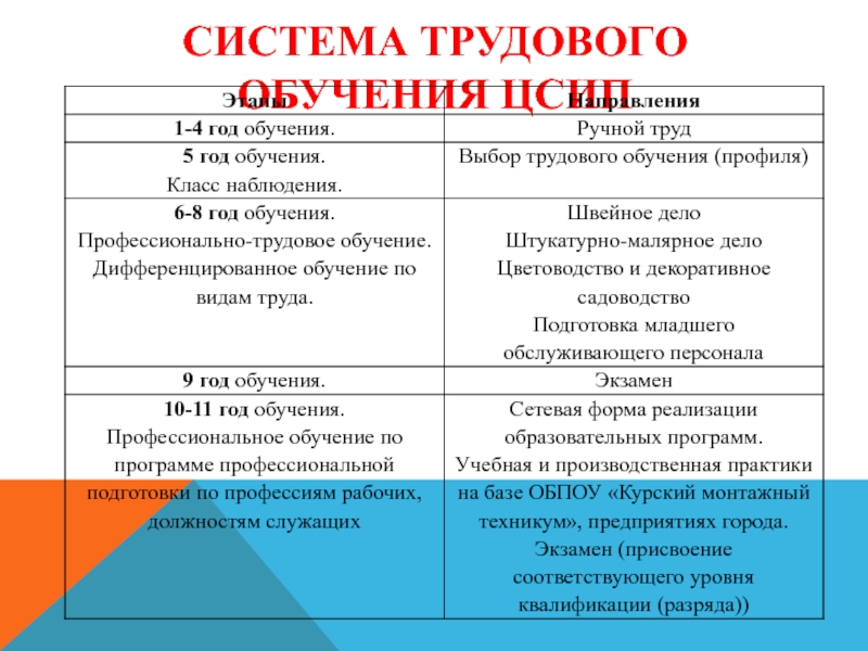 СИСТЕМА ТРУДОВОГО ОБУЧЕНИЯ ЦСИП