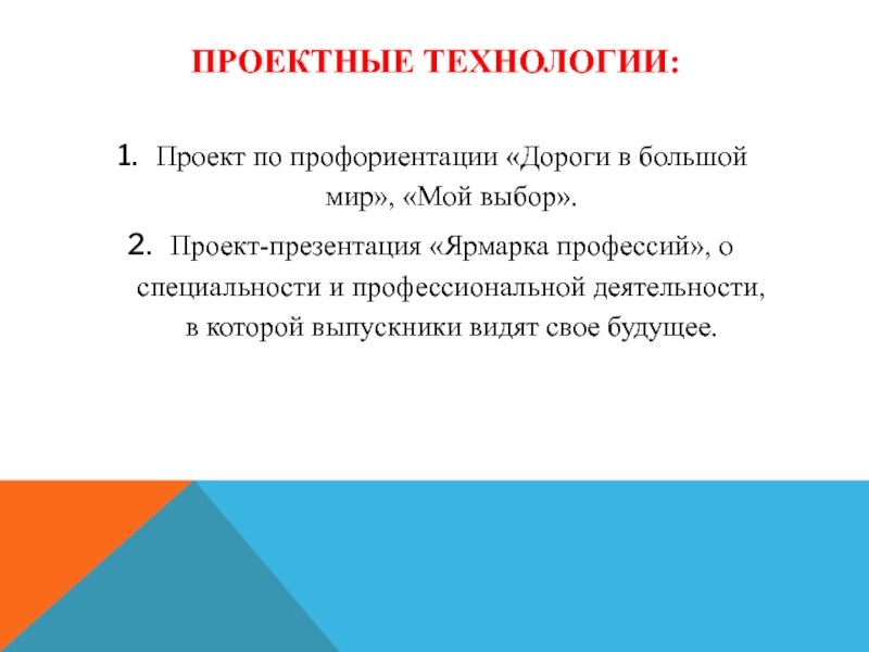 Проект по профориентации «Дороги в большой мир», «Мой выбор».