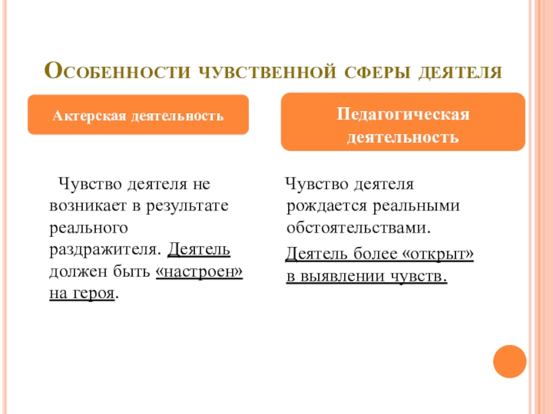 Деятель более «открыт» в выявлении чувств.