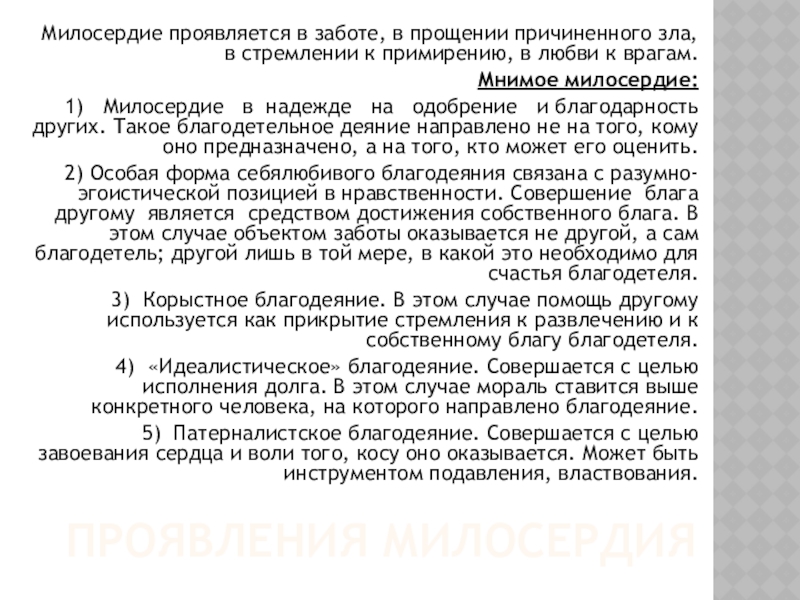 Слайд 21ПРОЯВЛЕНИЯ МИЛОСЕРДИЯ