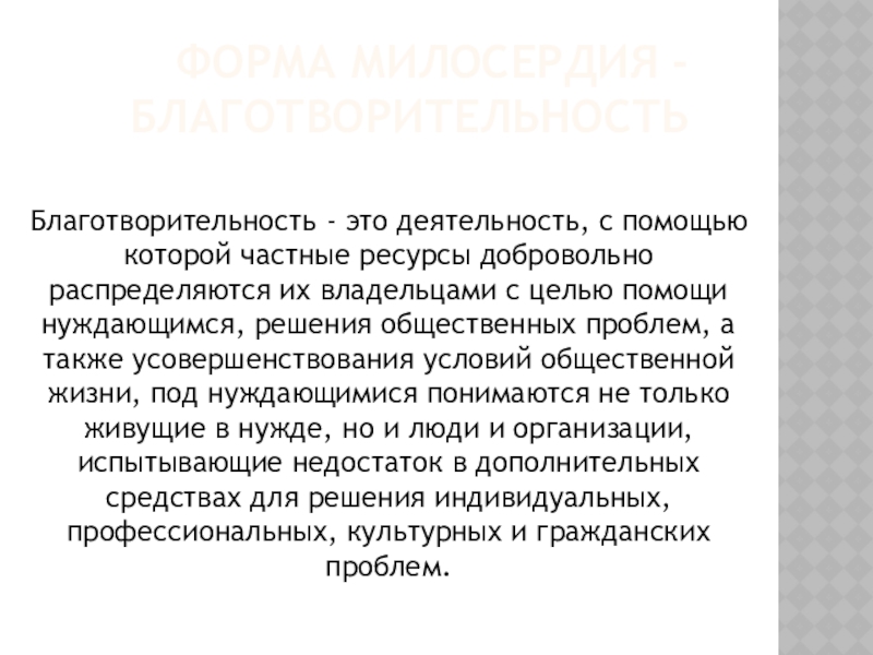 Слайд 12ФОРМА МИЛОСЕРДИЯ - БЛАГОТВОРИТЕЛЬНОСТЬ