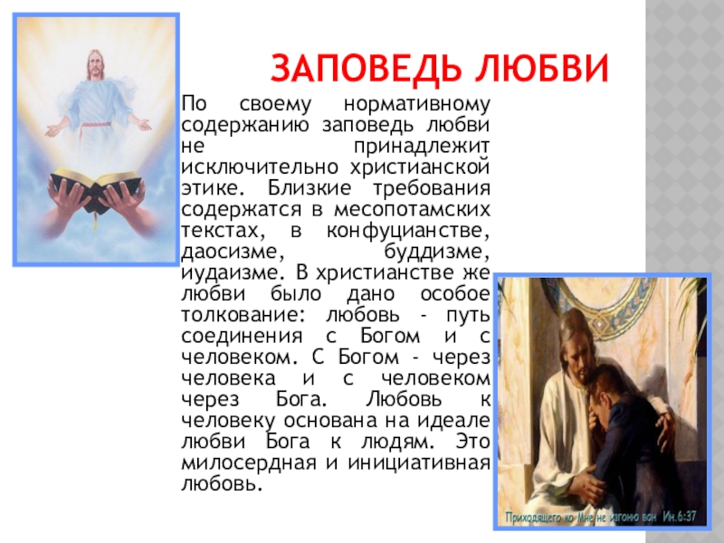 По своему нормативному содержанию заповедь любви не принадлежит исключительно христианской