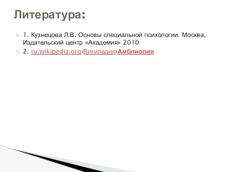 Слайд 201. Кузнецова Л.В. Основы специальной психологии. Москва, Издательский центр «Академия» 2010