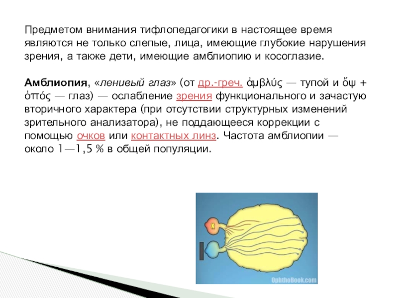 Слайд 6Предметом внимания тифлопедагогики в настоящее время являются не только слепые, лица,
