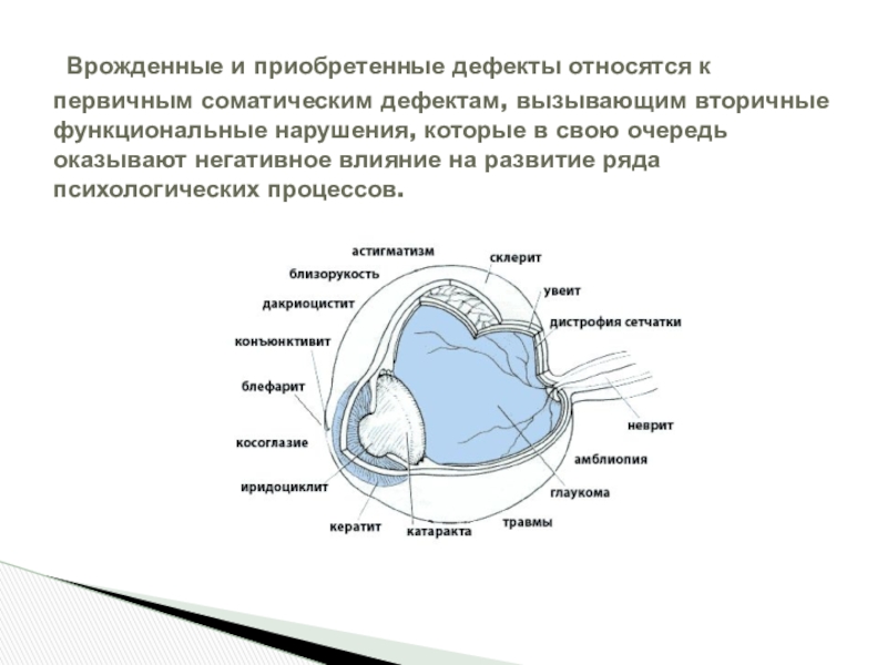 Слайд 7 Врожденные и приобретенные дефекты относятся к первичным соматическим дефектам, вызывающим