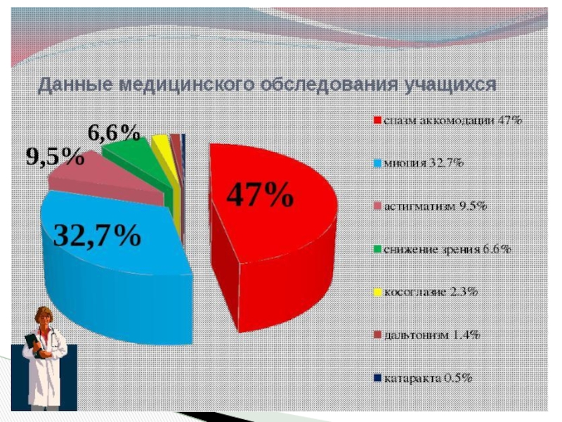 Слайд 8 Степень нарушения зрительной функции определяется по уровню