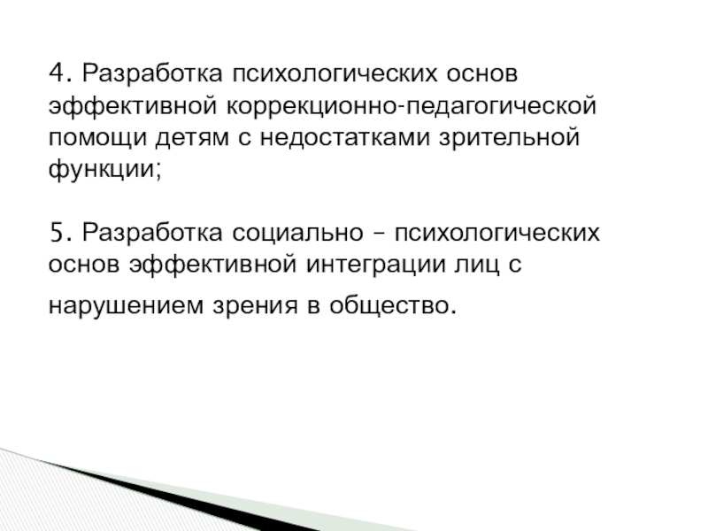 Слайд 194. Разработка психологических основ эффективной коррекционно-педагогической помощи детям с недостатками зрительной