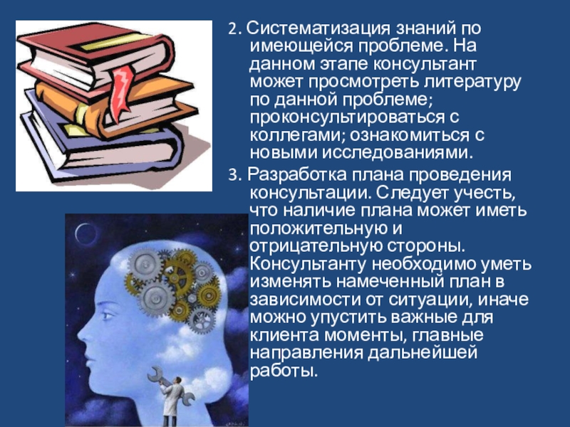 полученные консультантом перед началом работы с клиентом, помогут реализовать следующие этапы подготовки к консультации.