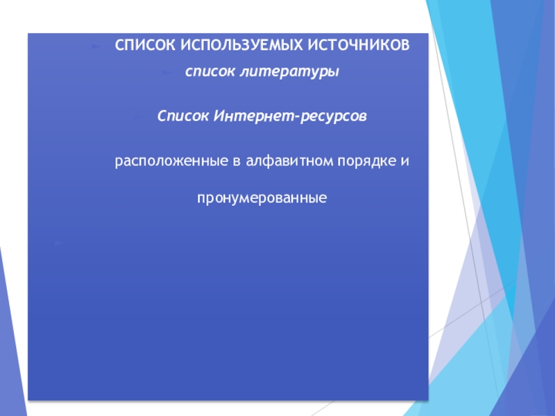 Слайд 13СПИСОК ИСПОЛЬЗУЕМЫХ ИСТОЧНИКОВ