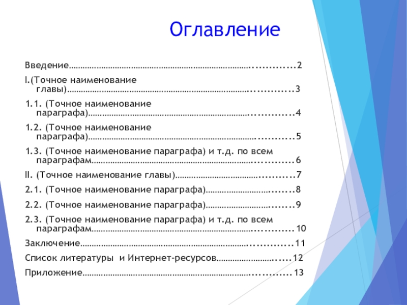 2.3. (Точное наименование параграфа) и т.д. по всем параграфам…………………………………………………………….............10