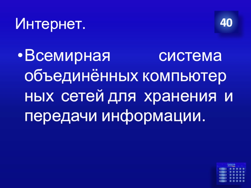 Это сайт презентаций, где можно хранить и обмениваться своими презентациями, докладами, проектами, шаблонами в формате PowerPoint с другими пользователями. Мы помогаем школьникам, студентам, учителям, преподавателям хранить и обмениваться учебными материалами.