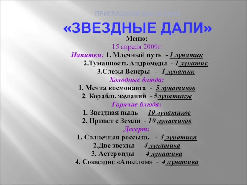 Тема: Мир звезд в поэзии