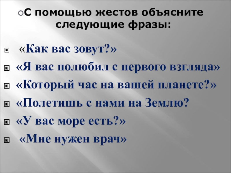 С помощью жестов объясните следующие фразы: