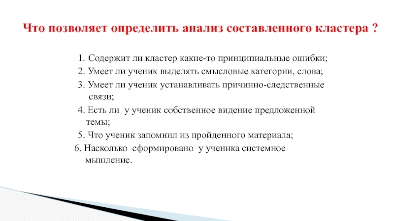Что позволяет определить анализ составленного кластера ?